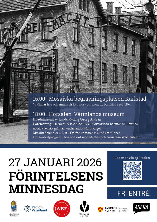 Obs, programmet inleds redan kl 16 vid Mosaiska kyrkogården i Karlstad där vi tänder ljus och minns de kvinnor som kom till Karlstad i juli 1945.