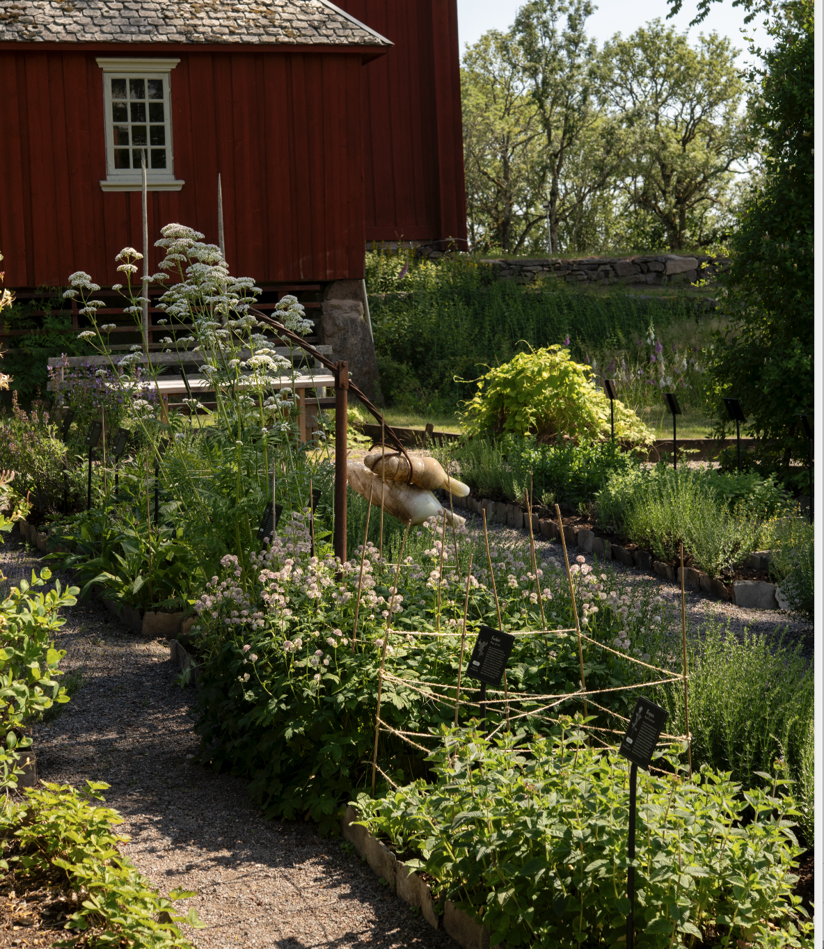 The appearance of the garden today is based on archaeological excavation and action plans made by the landscape architect Sven A.Hermelin in the 1990s. It was also then that the apple orchard and the herb garden were created. At the end of the garden is the fish pond where the servants used to be able to pick up a fresh sparkling carp for the couple’s dinner guests!