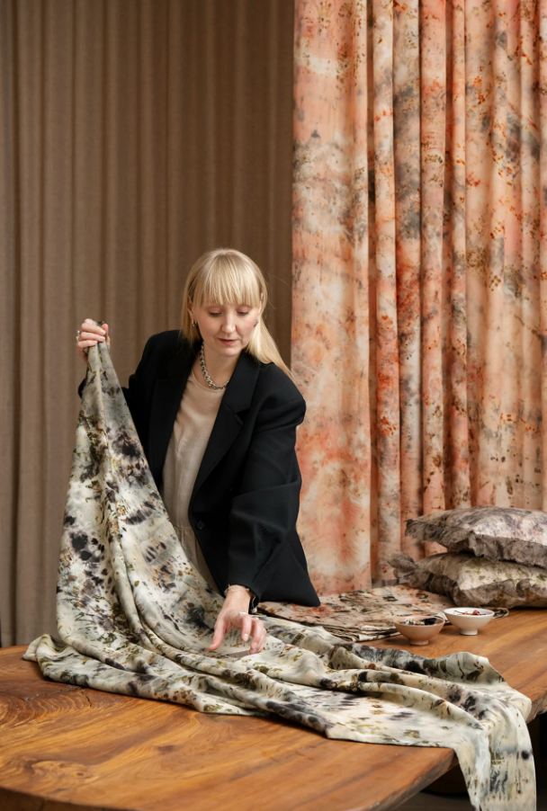 De vackra kläderna av siden kommer från märket Alice Fine, som drivs av Karin Alice Bjurström. Hon är en Stockholmsbaserad textil-konstnär och modedesigner med passion för hållbar tillverkning. Hon använder naturen i sitt konstnärskap för att göra uttrycksfulla, växtfärgade tyger och interiörer. Allt är tillverkat med omsorg, hög kvalitét och fritt från skadliga kemikalier.